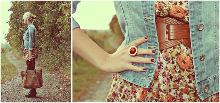 Wo wir schon bei blühen sind – mein heutiges Outfit ist nochmal mit Blümchen. Obwohl der Blumendruck ja eher sommerlich ist, sind die braunen und orangen Farben von meinem Kleidchen mehr herbstlich. Zu beäugen gibt es auch mal wieder meine Tasche von Bershka. Ich kann nur immer wieder betonen, wie toll sie ist.