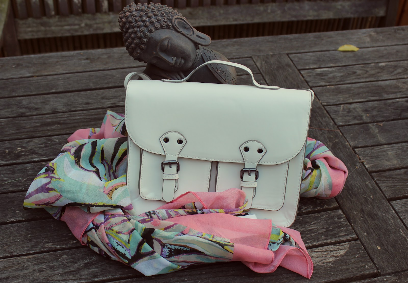 Die Tasche find ich toll! Vor allem in weiß, ganz besonders. Und das Tuch passt natürlich super dazu, wäre toll mal ein ganzes Outfit damit zu sehen! 🙂