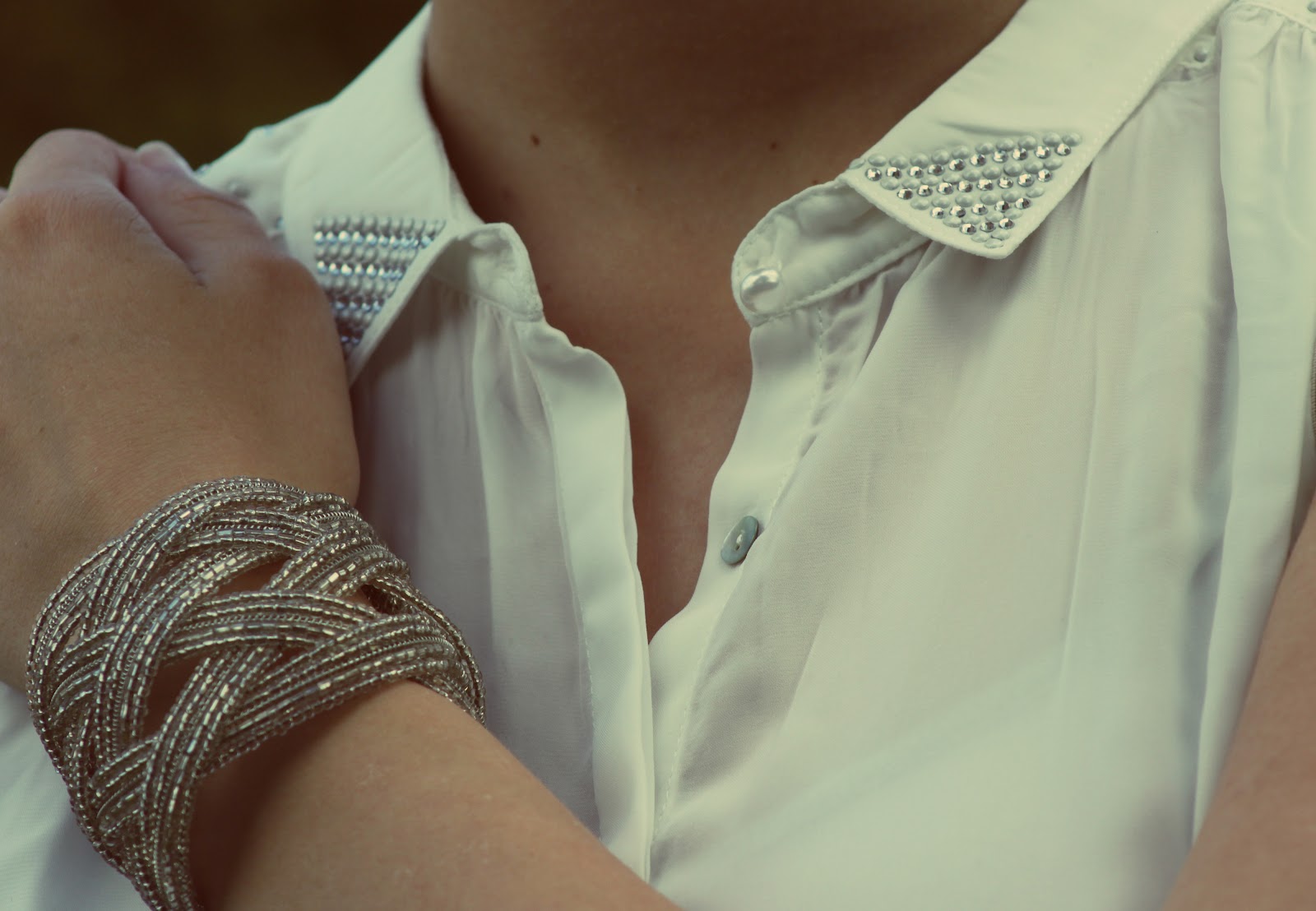 I also bought the white shirt I’m going to show you today with my Pull&Bear-order. The material is so soft and light – it’s amazing, I have nothing comparable in my closet! There are little silver stones on the collar and on the shoulders as you can see in the first picture. How do you like the shirt?