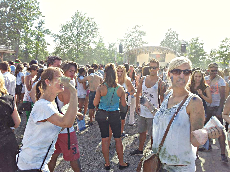 Am Sonntag nachmittag startete zum ersten Mal das Farbgefühle Festival in Heidelberg. Wer das Konzept nicht kennt: es erinnert stark an das traditionsreiche Holi-Fest in Indien, wo mit Farbpulver geworfen wird – allerdings hat das Farbgefühle Festival keinen kulturellen Hintergrund, sondern ist einfach ‚just for fun‘. Und genau so war es auch – eine riesen Spaßparty. Subjektiv gesehen war es eine supergeile Party mit vielen coolen Leuten, einem Haufen bunter Farbe (was irgendwann leider zu einer dunkelgrauen Mischung wurde), dazu passender Musik und einer immensen Ausgelassenheit.