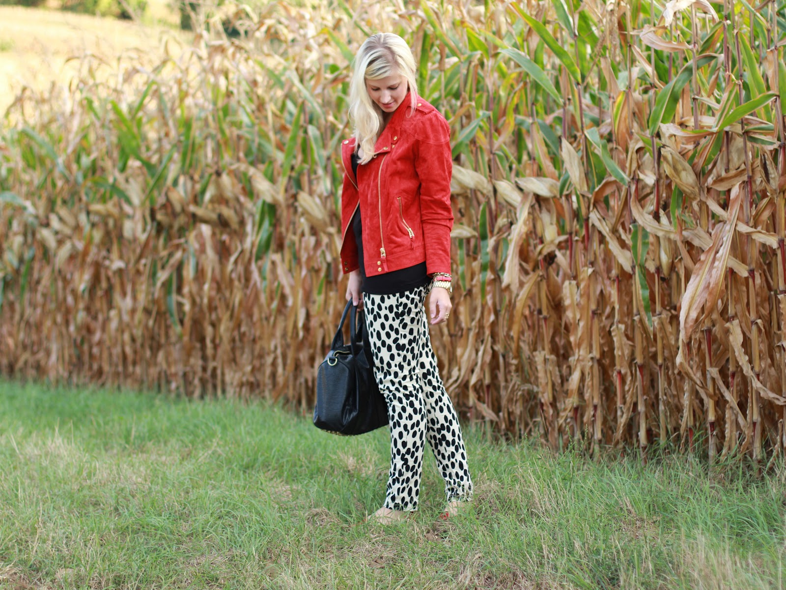 siehst toll aus! ich mag keine musterhosen an mir, aber an anderen finde ich es immer sehr bezaubernd – wenn gut kombiniert 🙂 das hast du! die rote lederjacke steht dir einfach sau gut!