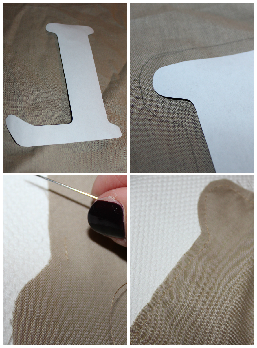 Größtmöglich habe ich dann meinen Anfangsbuchstaben (ein L, für die Langsamen) ausgedruckt und ausgeschnitten. Den Schnitt habe ich dann als Schablone verwendet und auf den Stoff gemalt, ausgeschnitten und dann nochmal schön ordentlich gebügelt. Dann fing das Meisterwerk an, denn das ganze musste dann noch auf die Kissenhülle genäht werden. Lasst euch gesagt sein: wenn ich das schaffe, dann kriegt ihr das mit geschlossenen Augen hin. Ich stelle immer wieder fest, dass ich eine Niete im Nähen bin und dass man mich besser in einen Hauswirtschaftskurs stecken sollte. Aber ich hab’s geschafft! Bis zum Nähen hat das ganze übrigens schätzungsweise 5 Minuten gedauert. Wenn man jetzt noch eine Begabung in der Handhabung von Nadel und Faden hat, ist das ganze ein 10-Minuten-DIY und wirklich kein Hexenwerk, aber ich bin zieeeemlich stolz auf mich selbst und finde, dass das Kissen mein Bett sehr aufwertet. Und kommt mir jetzt nicht mit „unsauber“ gearbeitet. Das ist absichtlich so. Shabby, ihr wisst schon. Was meint ihr?