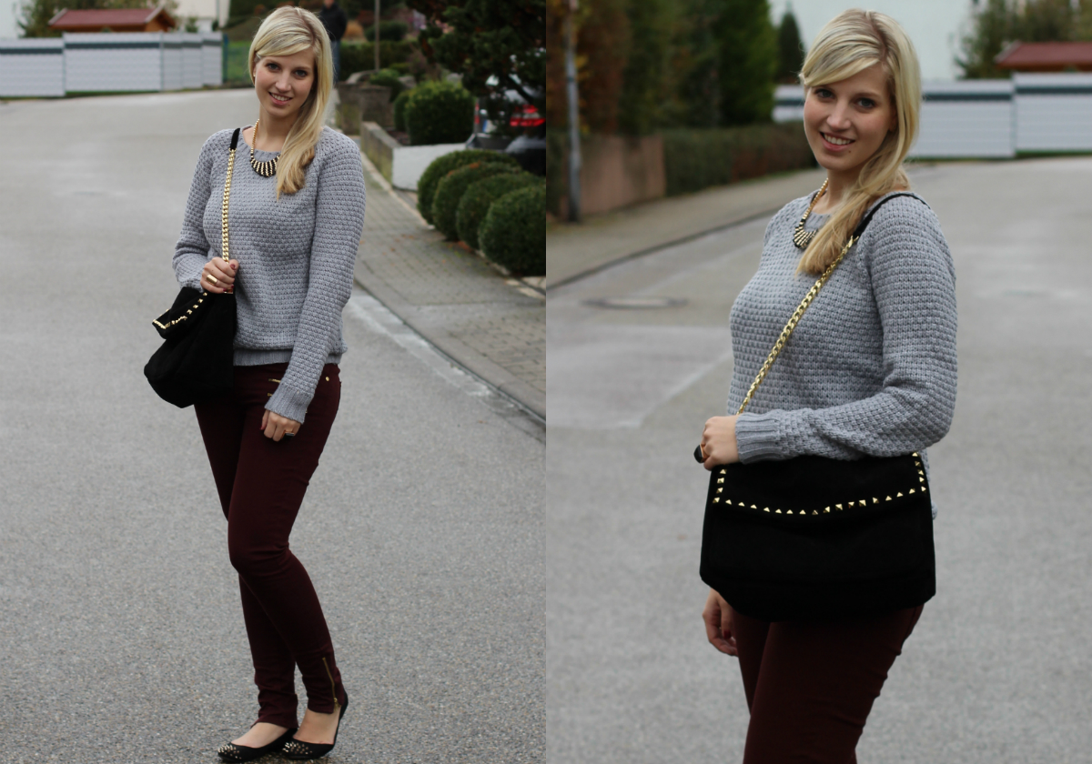Today the stores in town were open for business in the afternoon so I went for a walk through the stores with my mom and sister. I was able to finally buy the Chai Latte-mix and am enjoying it while typing this. Due to the cold weather, I had to wear a thick knitted sweater and I also got to wear my new burgundy pants as well as my new favorite bag from Zara that I just absolutely adore. How do you like the outfit?