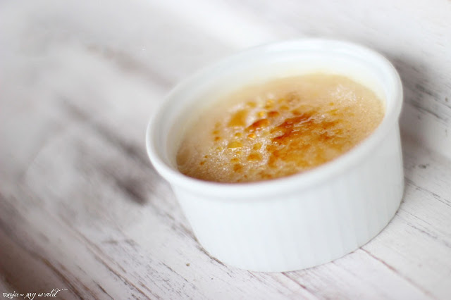2 EL Stärke, 1/2 l Milch, eine Zimtstange, 4 Eigelbe, 130g Zucker, etwas Zitronenabrieb und etwas Zucker für die Kruste