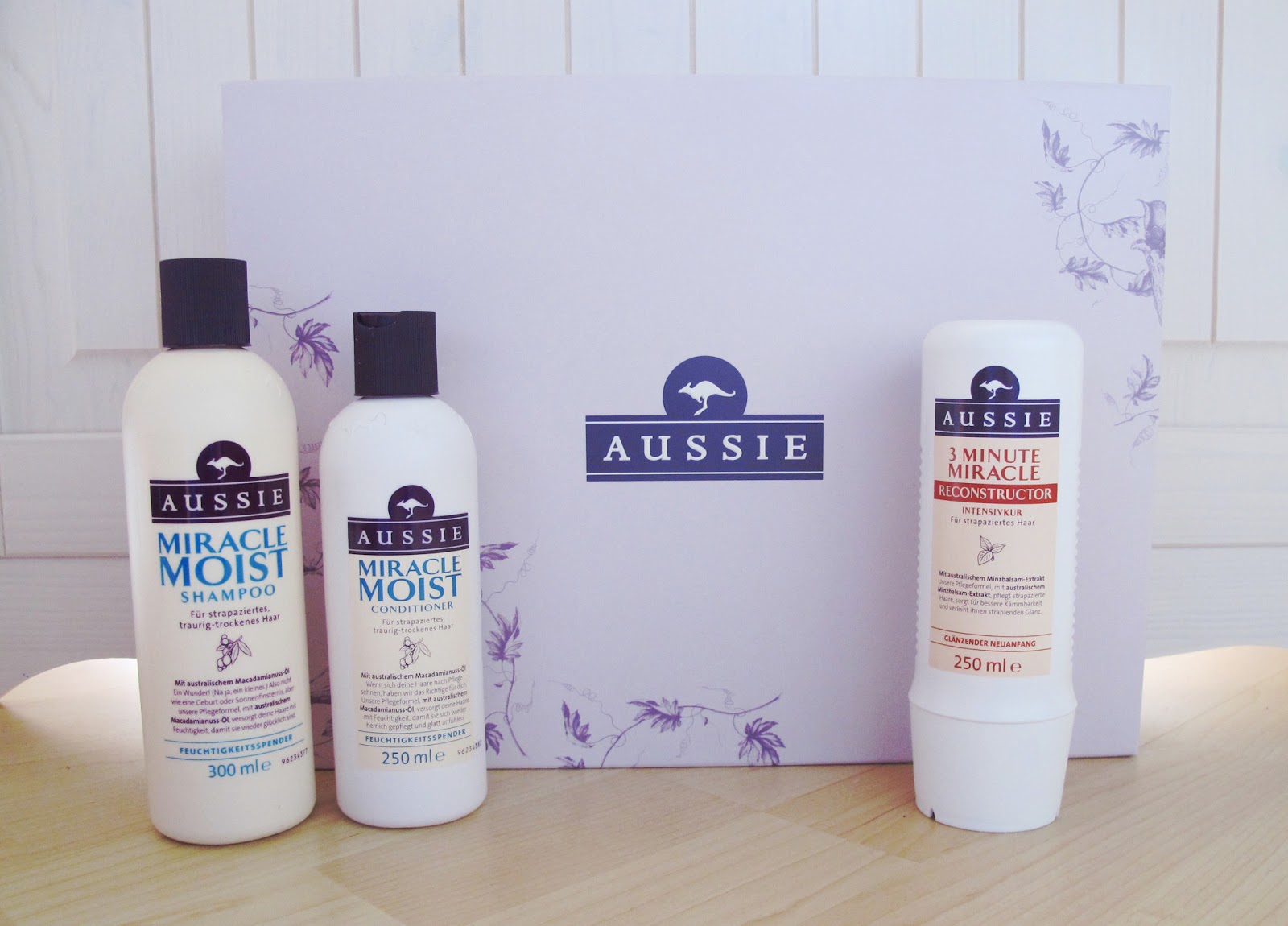Und was passierte am nächsten Tag, als die Produkte vom Vortag alle bereits angebrochen und somit nicht mehr zurückgegeben werden konnte? Eines der Pakete, die ich am Vortag in den Feeds meiner Lieblingsblogger gesehen hatte, wurde mir vom Postbote überreicht. Und zwar genau die Pflegeserie, die ich mir selbst gegönnt hatte. Und weil ich (außer bei Kleidungsstücken) ungern ein Hamster bin und alles auf Lager haben will, möchte ich das schöne Paket samt Box an euch verlosen. Sicherlich habt auch ihr den Hype um die Produkte mitbekommen – eventuell hat sich aber auch der ein oder andere von euch vom Preis (ca. 6€ pro Flasche) abschrecken lassen. Wer aber trotzdem mal testen möchte, was Aussie so kann, der darf gerne am Gewinnspiel teilnehmen.