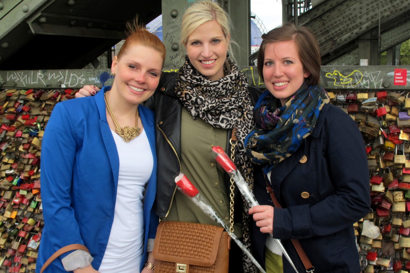 Das lange Wochenende haben zwei meiner Mädels und ich nicht auf der Couch verbracht: Roadtrip war angesagt und zwar (wieder) nach Köln. Nach vier Tagen in der Stadt und kumulierten 15 Stunden Schlaf bin ich zwar völlig am Ende, aber habe ein dickes, fettes Grinsen auf meinem Gesicht. Neben allen möglichen Sehenswürdigkeiten wie dem Olympia- und Schokoladenmuseum, den alten Stadtmauern und natürlich dem Dom und ein paar anderen wirklich schönen Kirchen gab es allerhand besonderes und außergewöhnliches, das ich doch gerne mit euch teilen möchte. Wenn jemand von euch einen voyeuristischen Einschlag hat, sollte er mit der Seilbahn über den Rhein fahren. Gegen unseren Willen wurden wir Zeugen eines Nackedei-Spektakels, denn mit der Seilbahn überquert man ein FKK-Freibad, in dem sich die Damen und Herren der Schöpfung in ihrem Birthday Suit, also komplett nackelig, tummelten – vermeintlich unbeobachtet. Natürlich hängten wir auch ein Schloss an die Schlösserbrücke. Beim Kauf des Schlosses ertanzten und ersangen wir uns die Gravur beim Ladenbesitzer, lernten, dass es Rabatt nur in Marokko gibt und bekamen als Dank für unsere künstlerischen Einlage Jarhmarkt-Schlüppis in Rosen verpackt geschenkt. Die lustigsten 30 Minuten des Tages!