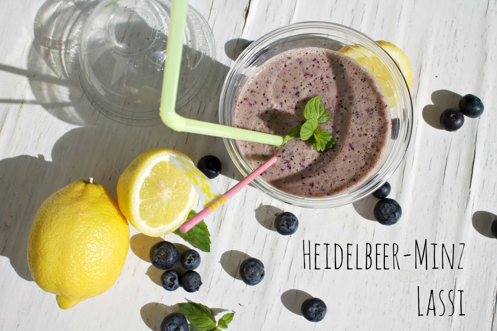 Bei dem heißen Wetter, das uns ja insbesondere ab nächster Woche so richtig ins Schwitzen bringt, schaffe ich es für meinen Teil zumindest tagsüber meist nicht, großartig etwas zu essen. Alles liegt schwer im Magen und eigentlich würde man gerne den lieben langen Tag nur Eiswürfel lutschen oder sich Caprieis intravenös zuführen. Aber beides ist nicht unbedingt eine gute Idee, ein Heidelbeer-Minz-Lassi aber schon. Das Lob für den heutigen Post geht aber nicht an mich, denn wenn ich Beeren verarbeite, endet das für gewöhnlich in einer neu zu streichenden Küche (Tatsache! Mit Zubereitung des letzten Blueberry-Smoothie punktete ich ungewollt unsere Tapete… huch). Den heutigen Post habt ihr Vicky vom Blog Lange Rede, Kurzer Sinn zu verdanken, die neben wunderbar leckeren und appetitlich angerichteten Rezepten auch Beautyposts macht. Ich bin ja jetzt nicht unbedingt ein Beautyfreak, aber Vicky’s Fotos sind einfach immer schön gestaltet. Also unbedingt bei ihr vorbeischauen, aber erst, wenn ihr ihr heutiges Rezept gelesen habt! Welche Sorte ist euer Lieblings-Smoothie?