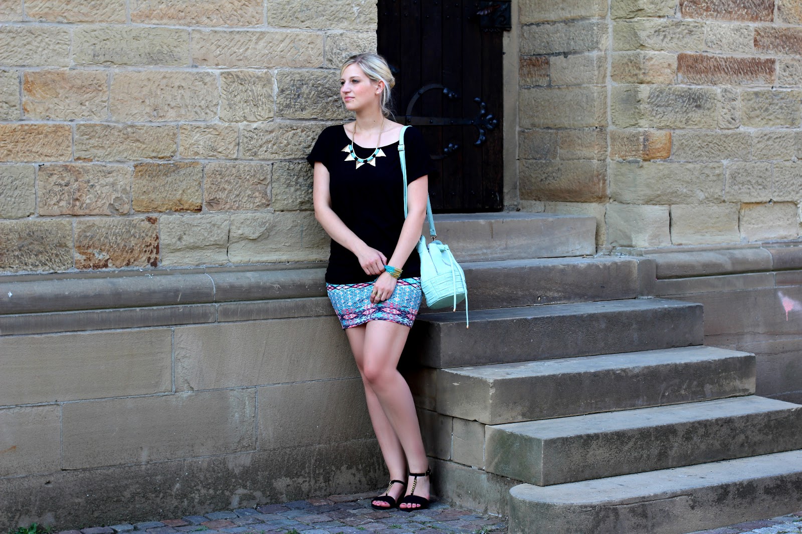T-Shirt, Sandalen, Kette – H&M // Rock, Armband – Bershka // Tasche – Pull&Bear