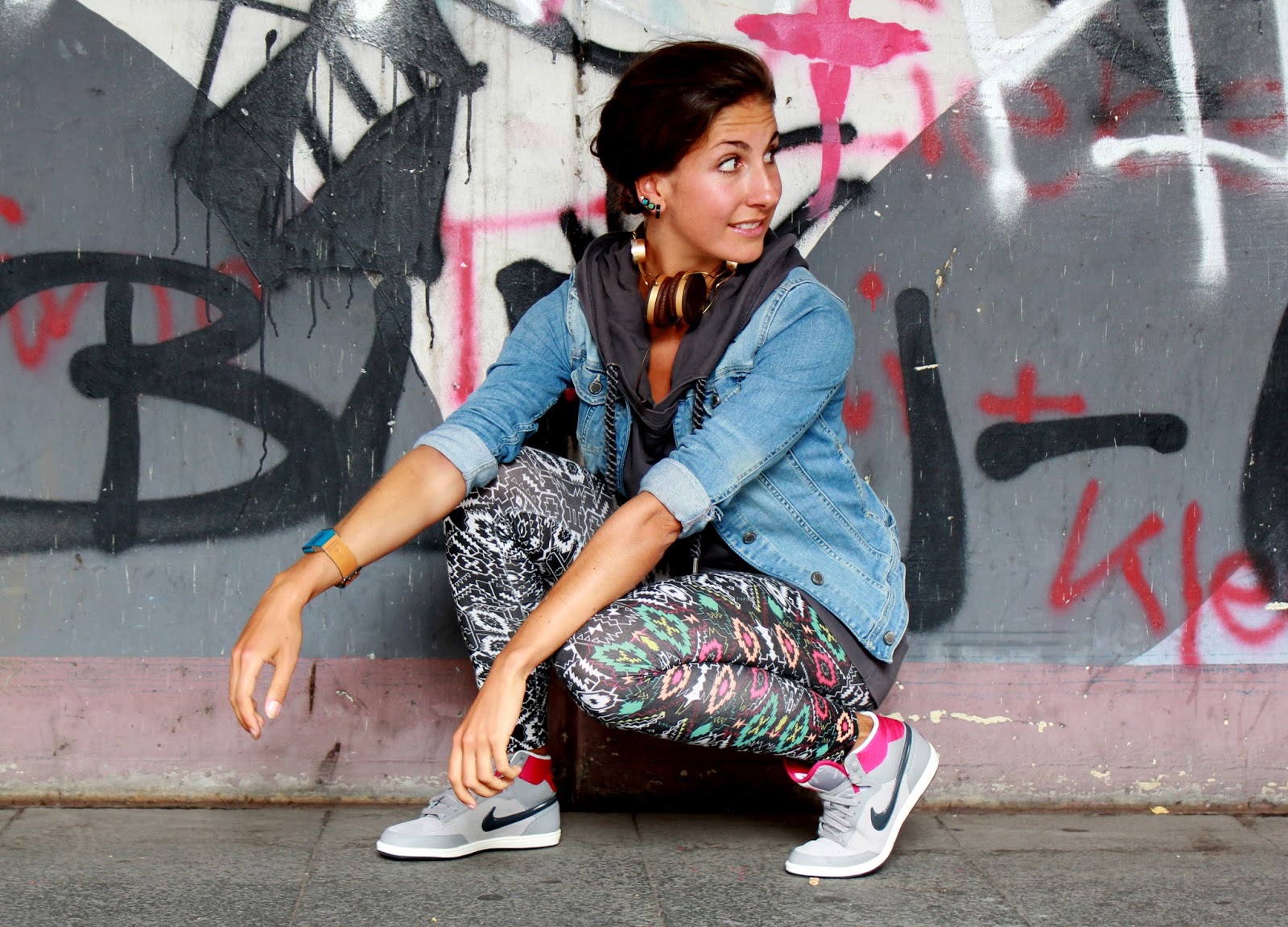 Erinnert ihr euch noch an meine Hip-Hop-Freundin Jessica? Wir hatten euch damals zusammen ein Outfit mit Zebra Print Sneakers präsentiert und euch eine Tanzeinlage vorgeführt – und euch hatte es gefallen. Damals hatte ich euch gefragt, ob ihr ab und zu nochmal etwas von Jessi sehen wollt und ihr habt eure eindeutige Zustimmung gegeben. Also bekommt ihr heute wieder eine ordentliche Portion Jessi zu sehen. Das heutige Outfit basiert auf den schönen grau-pinken High-Top Sneakern von Nike, die wir uns beim Def-Shop aussuchen durften. Was wir besonders gut finden ist, dass sie schön schmal geschnitten sind und daher trotz ihres Sneaker-Ursprungs doch recht feminin geblieben sind. Auf der Suche nach einer Location für das Outfit haben wir in einer Unterfühung die gleiche Farbkombi gefunden, die es auch in den Schuhen zu bewundern gibt: grau und pink – in Form von Ballerinas. Da haben wir die Jessi gleich davor gepackt und sie abgelichtet.