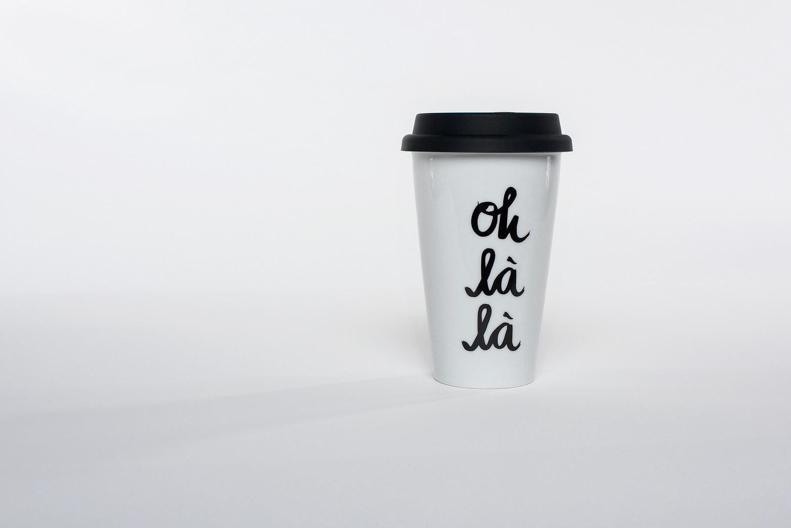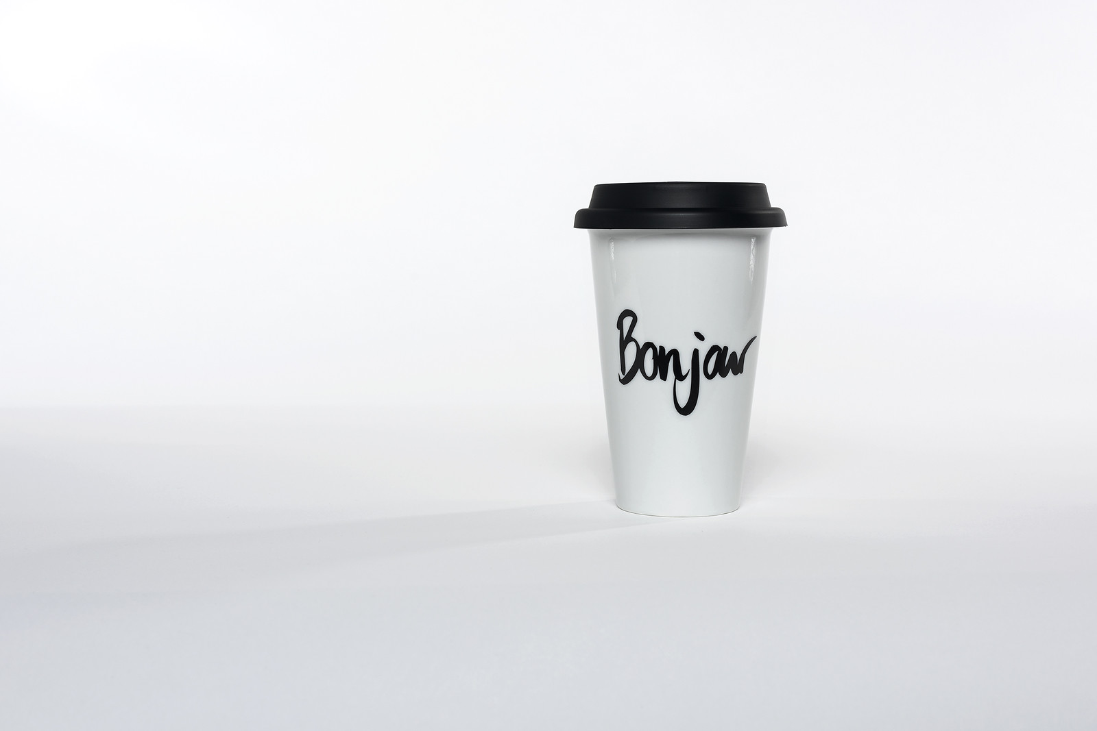 Mir gefällt der Becher mit der "Bonjour"-Schrift am Besten!