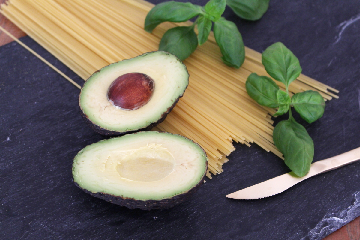 Kurz gesagt: ich habe Avocado-Spaghetti gekocht. Also nicht Spaghetti aus Avocado, sondern Spaghetti mit einer Avocado-Sauce. Geht superschnell und schmeckt cremig-lecker. Wie es geht und was ihr braucht, das verrate ich euch sofort, allerdings muss ich mal eben noch kurz was gestehen für alle, die das Aldi-Süd-Prospekt bekommen. Jap. Die Shooting-Idee ist vom Cover des Prospekts von letzter Woche. Leider nicht annähernd so gut, weil meine fotografischen Künste zu wünschen übrig lassen. Das Farbkonzept fand ich nämlich sowas von cool, dass ich direkt meine alte Schieferplatte rausgezerrt habe. Dabei fiel mir dann auch auf, dass ich dringend mal hinter meinem Bett saugen müsste (da hatte sich das Teil nämlich versteckt), aber das müssen wir ja hier jetzt nicht öffentlich diskutieren. Wenn ihr es nachkocht, lasst mich wissen, wie es euch geschmeckt hat!